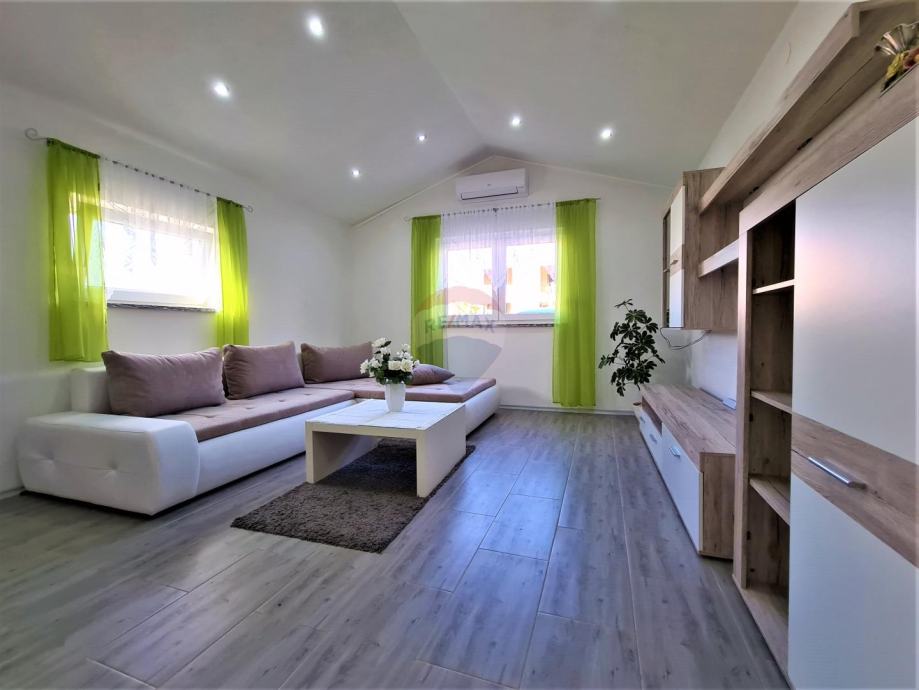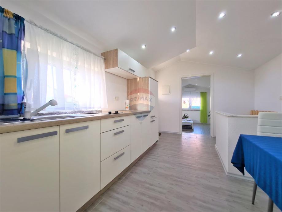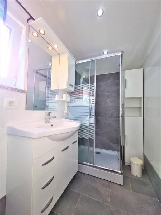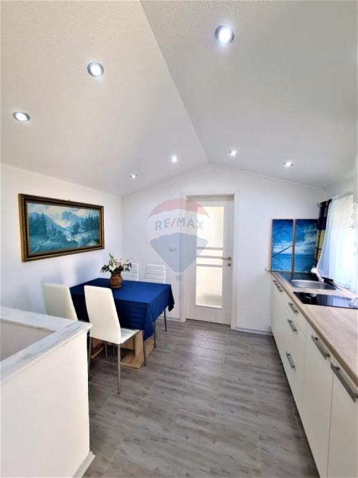 Velika prednost ove nekretnine je velika pomno uređena okućnica koja okružuje nekretninu a koja uz mediteransko bilje,cvijeće,masline te ostalu hortikulturu posjeduje i natkrivenu nadstrešnicu za uživanje u ljetnim večerima,dva parkirna mjesta te vrtnu kućicu za pohranu potrebnog alata za vrtlarenje.