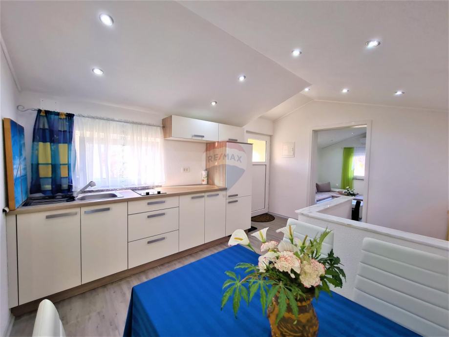 Nekretnina koja se sastoji od prostranog,veoma osunčanog dnevnog boravka,kuhinje sa blagovaonicom,velikom kupaonicom te jednom spavaćom sobom.
