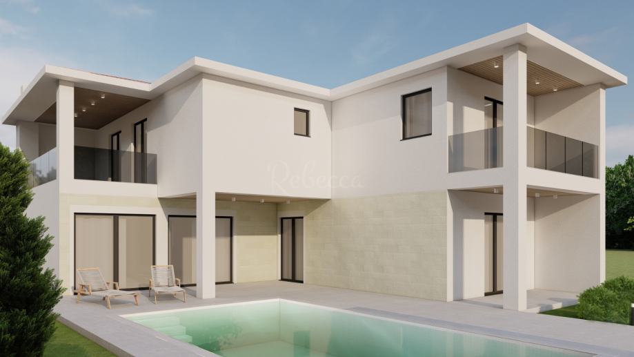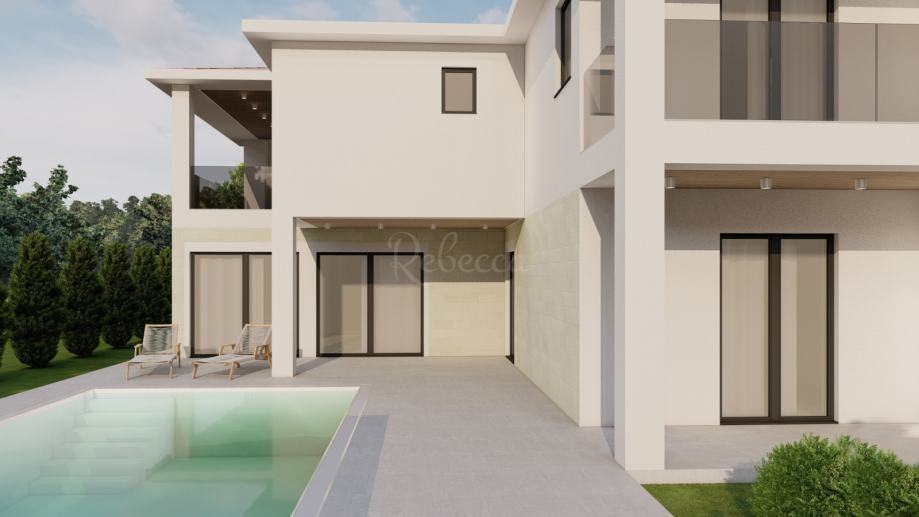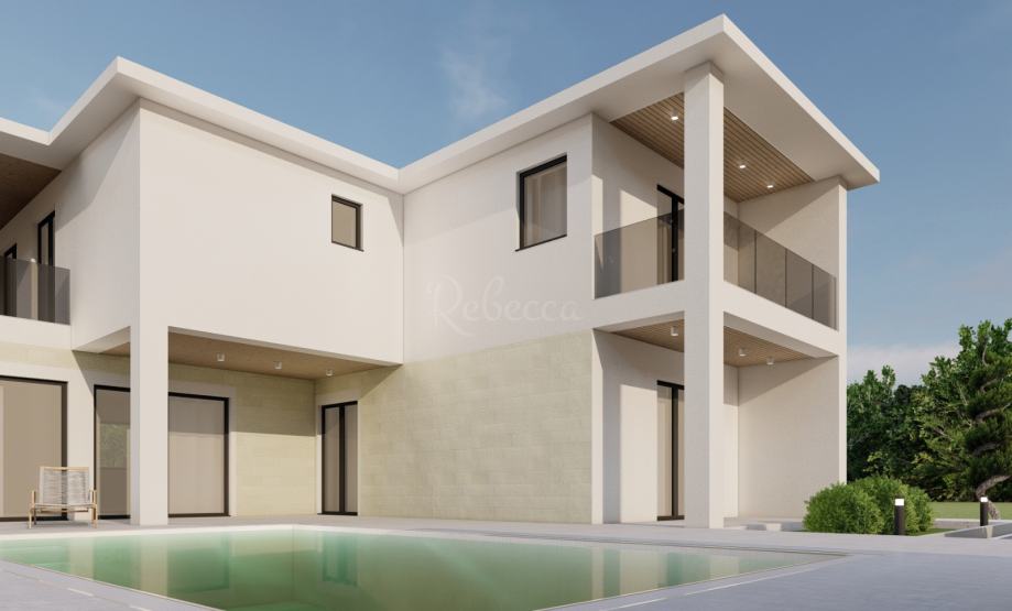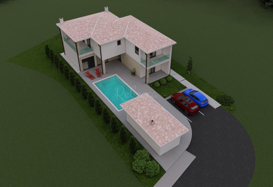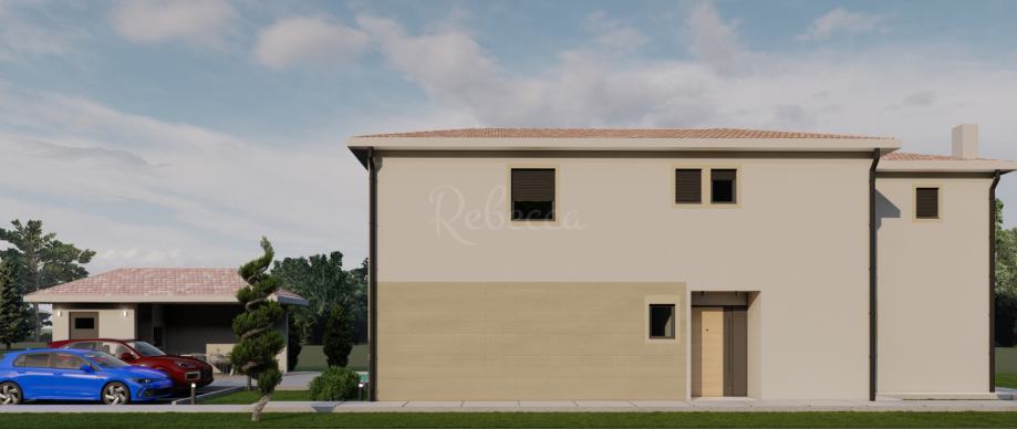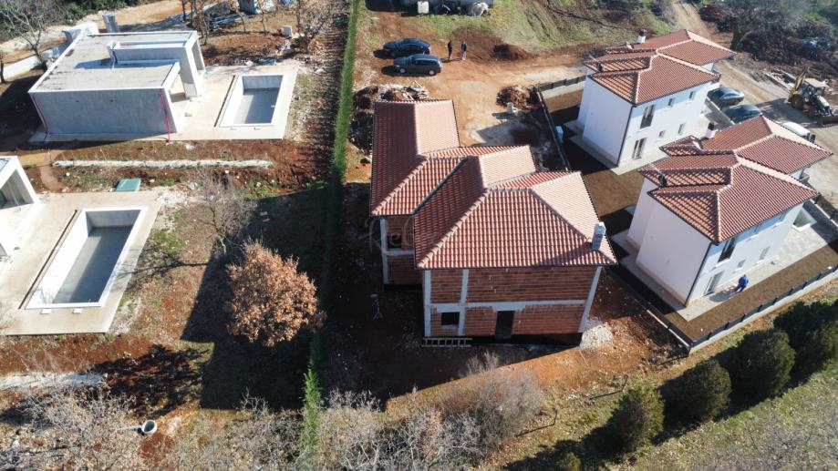 Na zapadnoj obali Istre, okružena bujnom sredozemnom vegetacijom koja se stapa s maslinicima, vinogradima i njivama, nalazi se Općina Kaštelir-Labinci. Dva mjesta - Kaštelir i Labinci, tal. Castelier - S. Domenica, postupno su tijekom stoljeća urbanistički nadograđivana, što je rezultiralo njihovim približavanjem, da bi danas tvorili jedno mjesto, smješteno desetak kilometara sjeverno od Poreča. U blizini Kaštelira prodaje se kuća s bazenom u završnoj fazi. Vila je veličine 214,53 m2. Sastoji se od prizemlja i kata. U prizemlju se nalazi dnevni boravak s blagovaonicom i kuhinjom s ostavom iz kojeg se izlazi na terasu i bazen. Tu se još nalazi i wc, spavaća soba sa zasebnom kupaonicom. Dnevni boravak ima predviđen dimnjak za kamin. Na katu se nalaze tri prostrane spavaće sobe svaka sa svojom kupaonicom te terase. Na katu se nalazi i dodatna ostava. Na okućnici se nalazi i vanjska kuhinja te tehnička prostorija za bazen. Dvorište kuće imati će parking za 2-3 automobila, bazen i ljetnu kuhinju. Bazenska tehnika će biti postavljena, te će biti stavljena i priprema za grijanje bazena. Klima uređaji će biti postavljeni u svakoj sobi putem fan coil sustava, podno grijanje će biti u svim prostorijama pomoću dizalice topline. Idealna nekretnina za luksuzan obiteljski život ili turistički najam.