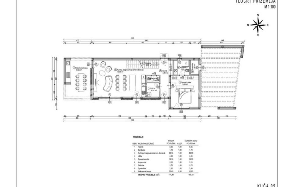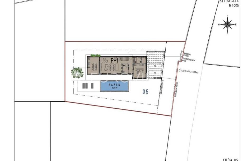 Ova prekrasna moderna vila od 223 m2 na dvije etaže, velikoj okućnici od 914 m2 u potpunosti se stopila s okruženjem i pravi je spoj moderne arhitekture i prirode. U prizemlju se smjestio veliki prostrani dnevni boravak i kuhinja, velika staklena klizna stijenka omogućava izlaz na vanjsku...