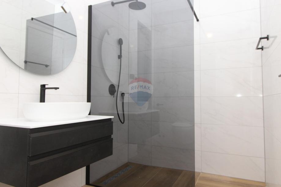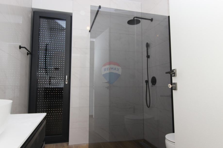 Savršeno riješeni parkirni prostor otvara mogućnost lijepog uređenja okućnice koja se prostire na 664 m2 površine a sama kuća ima neto površinu od 220 m2 korisnog prostora. Kuća će biti opremljena klimatizacijskim uređajima. Grijanje je osigurano putem podnog grijanja na dizalicu topline.
