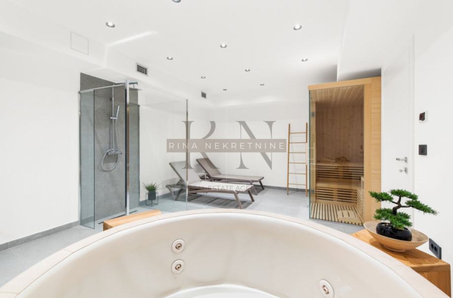Ova luksuzna vila nudi sve potrebno za uživanje ili kao investicija za najam. Dodatni sadržaji uključuju podrum koji služi kao fitness zona i spa zona, podno grijanje i klimatizaciju. Privatnost i mirno okruženje, a opet blizu svih sadržaja i mora, čine ovu vilu savršenom opcijom.