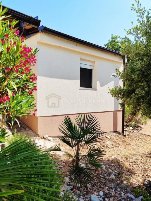 Sastoji se od dnevnog boravka s kuhinjom i blagovaonicom, dvije spavaće sobe, kupaonice i natkrivene terase. U dvorištu površine 408 m² nalazi se vrtna kućica s vanjskim tušem. Postoji prostor za parkiranje triju automobila, uz mogućnost proširenja. Pristup kući vodi asfaltiranom cestom, osim zadnjih 80 metara koji su makadam.