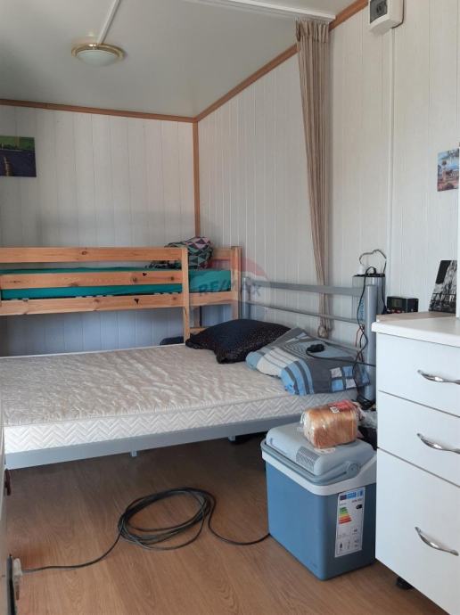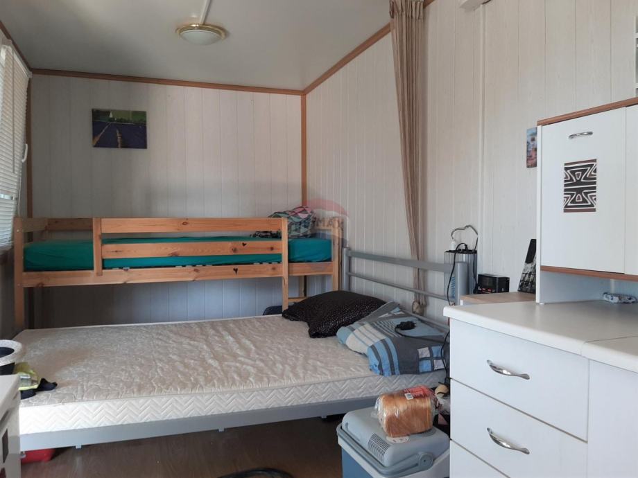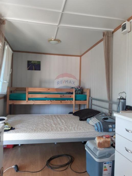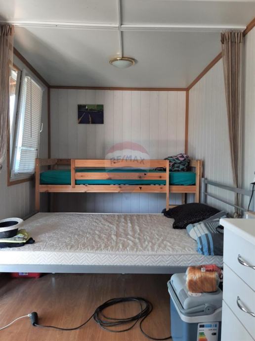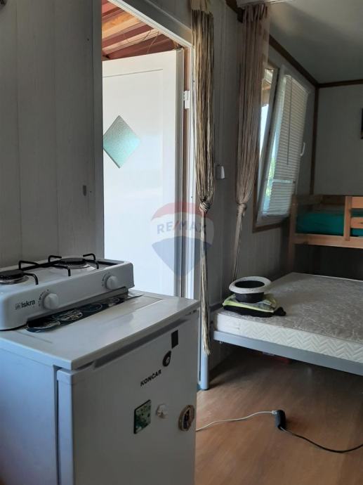 prodaje se manja vikendica u Kavranu, 3 kilometra udaljena od najbliže plaže. Vikendica se nalazi u manjem vikend naselju, postavljena je na negrađevinskom zemljištu. Vikendica je veličine 15 m2, i unutra je uređen tuš sa toaletom, kuhinja i kreveti. Na ulazu je uređena lijepa velika veranda. Vikendica ima solarne panele koji se koriste za napajanje uređaja kao što su frižider, rasvjeta.... Uredan pristupni put.