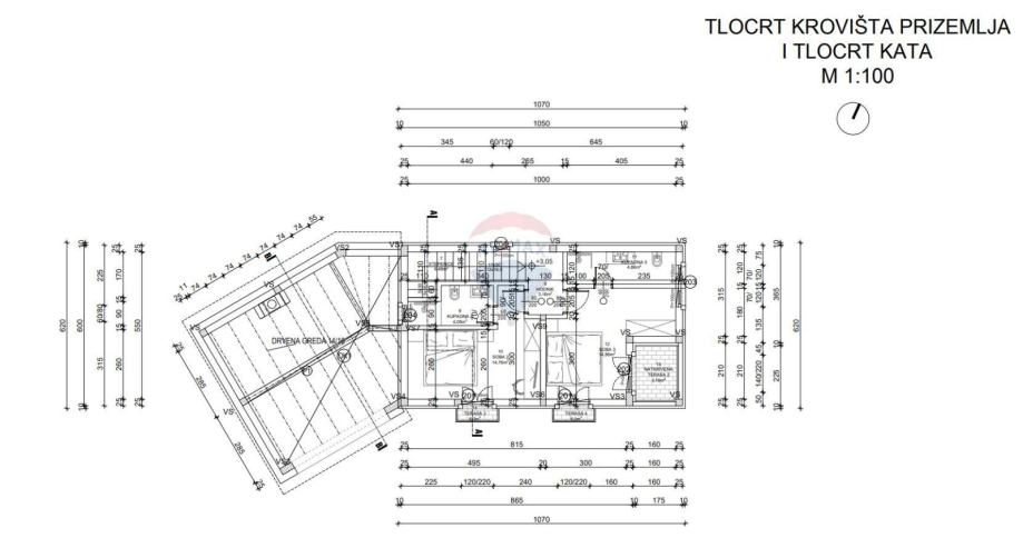 Sastoji se od prizemlja i kata, ukupno 3 spavaće sobe i 3 kupaonice.