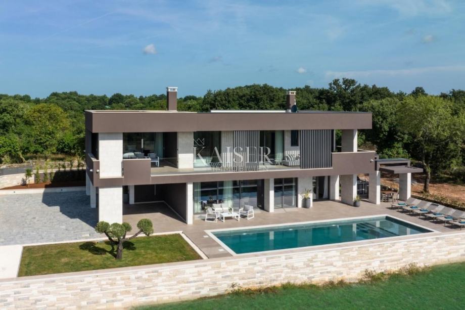 Kaiser Immobilien Vam predstavlja prestižnu, modernu vilu s bazenom, smještenu u idiličnom okruženju u općini Marčana, na istočnoj obali Istre. Ova luksuzna nekretnina nudi spoj suvremene arhitekture, vrhunske udobnosti i ekskluzivne lokacije, pružajući idealan balans između privatnosti i blizine mora.