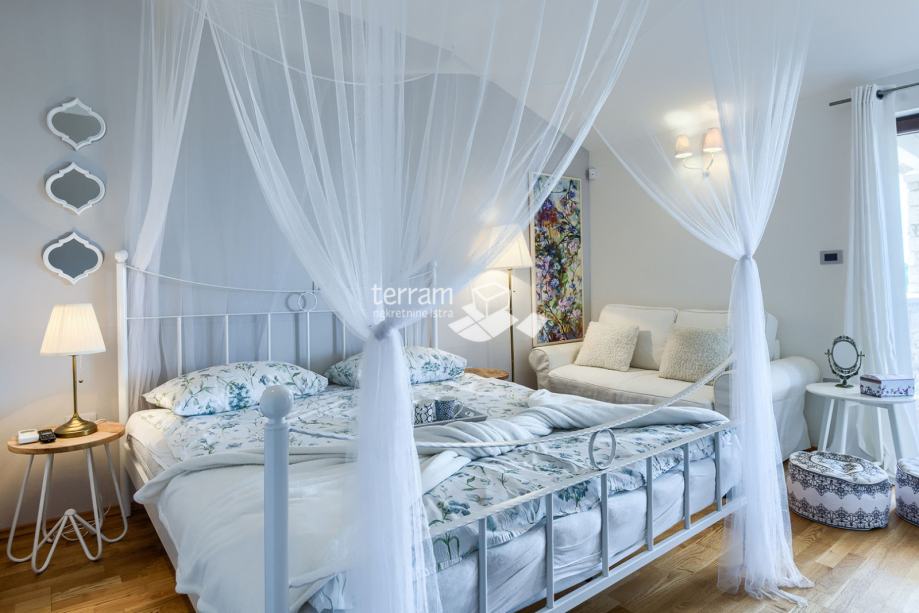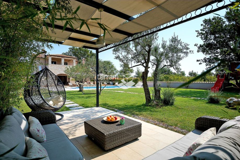 Istra, Krnica prodaje se samostojeća Villa, smještena na velikoj okućnici od 2758m2. Nalazi se u mirnom dijelu na osami te je okružena prirodom, maslinici i šume. Kuća je veličine 280m2 te se sastoji od prizemlja i prvog kata. U prizemlju kuće se nalazi ulazni predprostor, kuhinja s blagavaonom, dnevni boravak s izlazom na natkrivenu terasu, veliki bazen od 50m2, dvije spavaće sobe svaka sa svojom kupaonicom i jedna zasebna kupaonica. Stepenište koje vode na prvi kat tamo su smještene dvije spavaće sobe svaka sa svojom kupaonicom i terasom. U prizemlju se još nalazi konoba i spa centar. Bazen je grijani te se može koristiti cijele godine, uređena okućnica gdje se nalazi tenis teren i golf igralište sa 7 rupa. Kopletna je kuća klimatizirana te je grijanje riješeno dizalicama topline, vrhunski kvalitan namještaj.