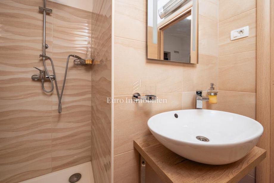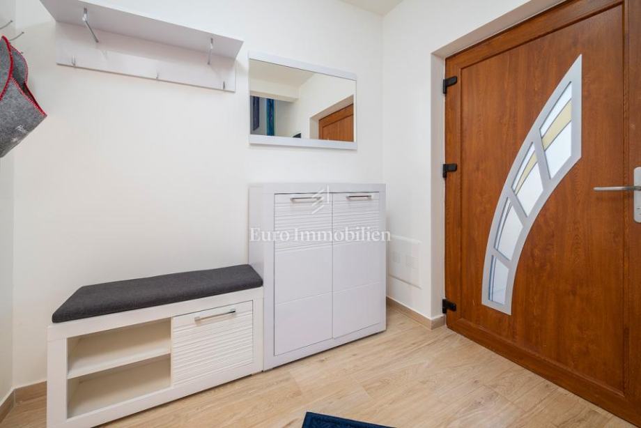 U svakoj prostoriji postavljena je klima jedinica, a provedena je i prva faza sustava grijanja na radijatore, što omogućuje jednostavnu nadogradnju za cjelogodišnje korištenje. Prostrane staklene stijene povezuju unutarnji prostor s uređenim dvorištem, stvarajući ugodnu i svijetlu atmosferu tijekom cijelog dana.