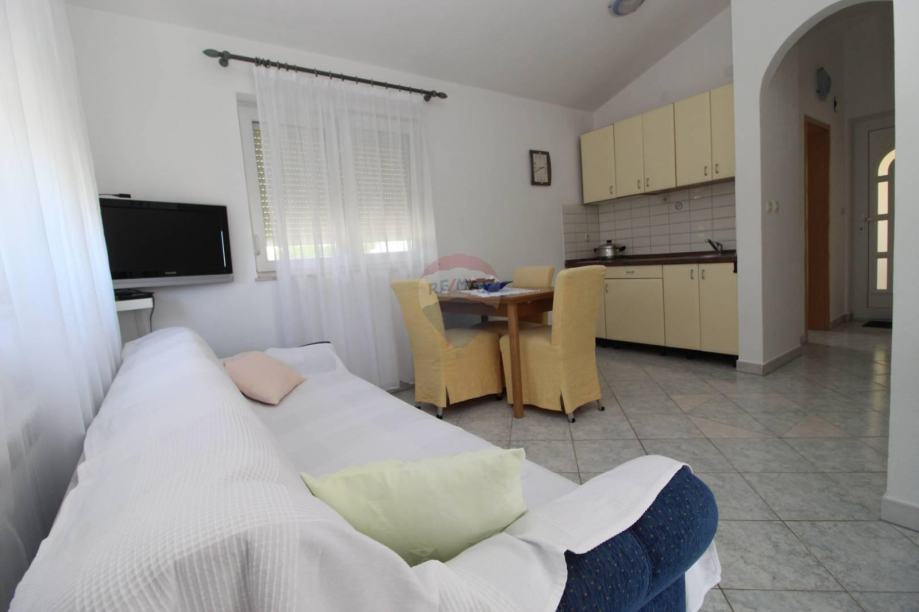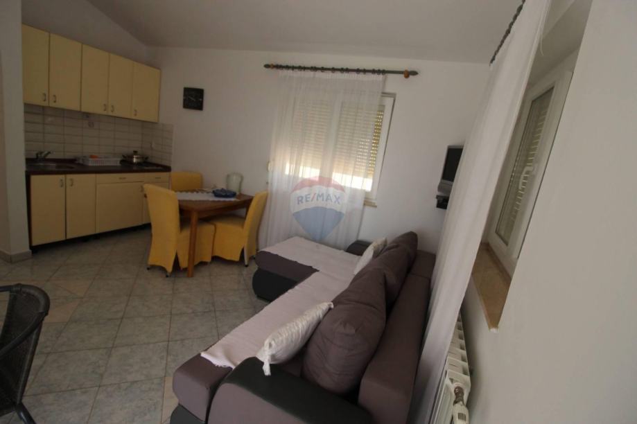 U jednoj zgradi, u prizemlju se nalaze 2 identična stana sa po 2 spavaće sobe, kuhinjom-blagovaonom, dnevnim boravkom, kupaonom i terasom sa pogledom prema moru. Na katu iste zgrade se nalaze još 3 uređena i namještena apartmana, svaki sa kuhinjom-blagovaonom, dnevnim boravkom, spavaćom sobom, kupatilom i balkonom.