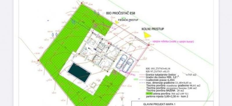 Prizemnica sa dvije spavaće sobe, ukupne stambene površine 81 m2 sa 743 m2 okućnice na kojoj je bazen, sunčalište i više parkirnih mjesta.