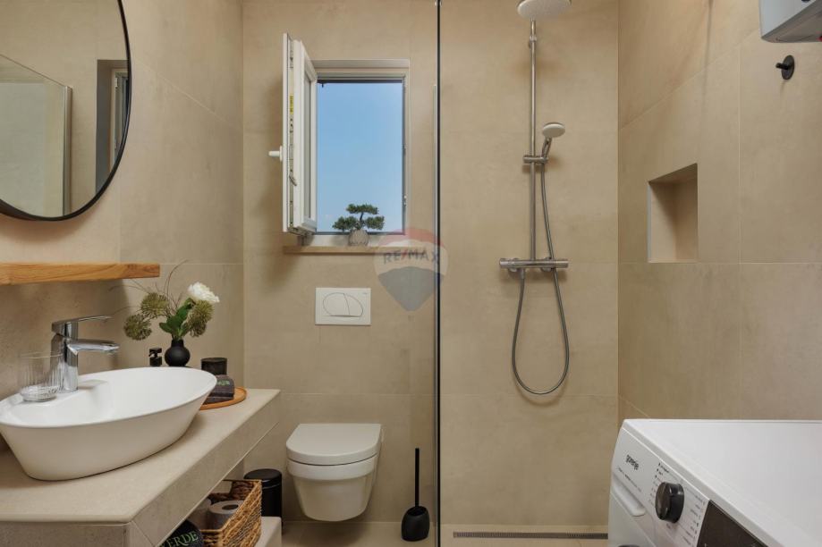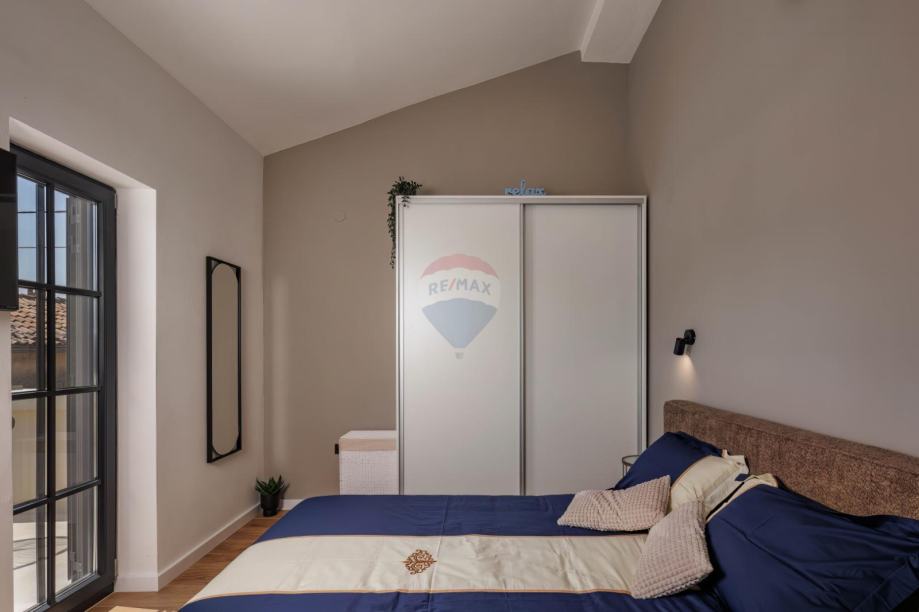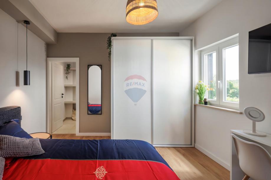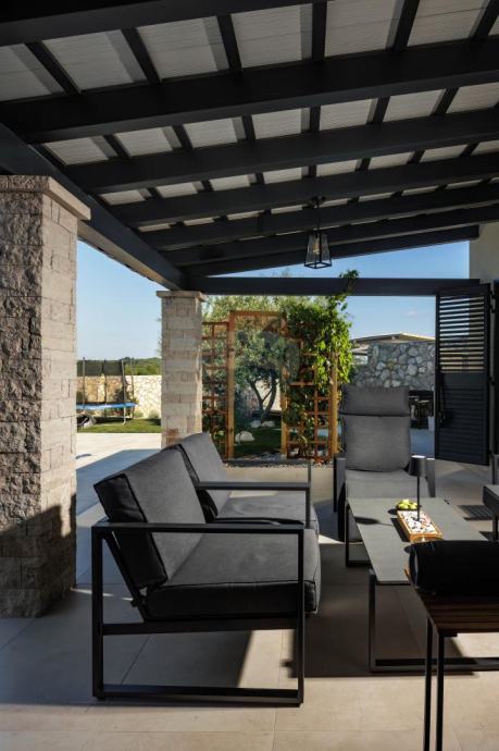 Ovo ekskluzivno imanje prostire se na 2.459 m² uređenog i ograđenog zemljišta te pruža apsolutnu privatnost. Prostrani grijani bazen od 50 m² s velikim sunčalištem idealan je za opuštanje pod suncem. Mediteranski vrt s lavandom, oleandarima, ružmarinom i starim maslinama stvara mirisnu oazu mira. Vanjska kuhinja od kanfanarskog kamena omogućuje autentičan gastronomski doživljaj.