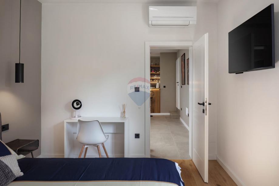 Unutarnji prostor vile prostire se na 273 m² neto površine i sastoji se od prostranog dnevnog boravka s modernim barom i blagovaonicom, kuhinje po mjeri s vrhunskim uređajima, te četiri luksuzne spavaće sobe, svaka s vlastitom kupaonicom obloženom dizajnerskom talijanskom keramikom.