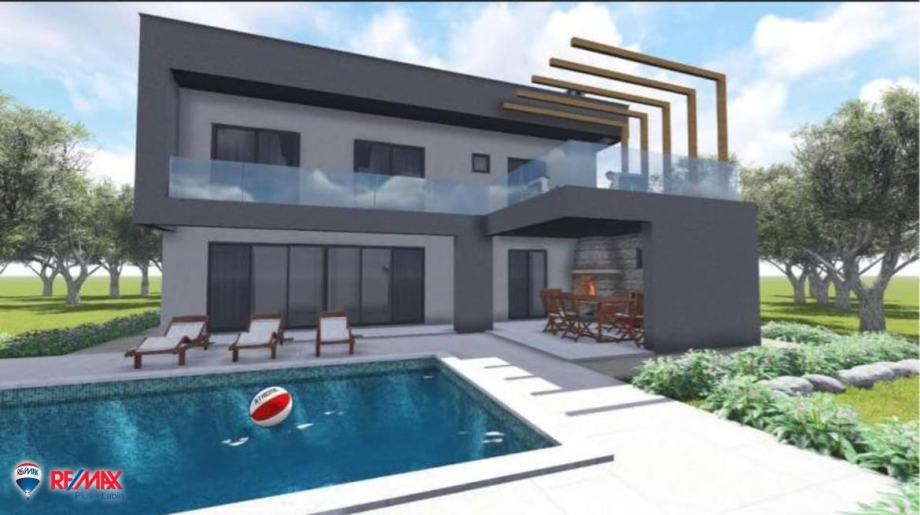 Okućnica je površine 950 m2 na kojoj je planiran bazen 32 m2.