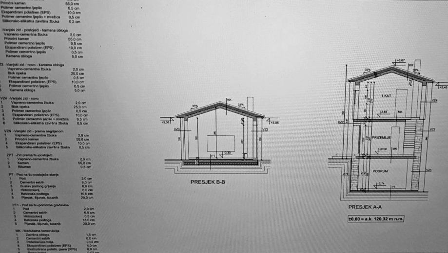 Pri rekonstrukciji je korišten istarski kamen i nove tehnologije. Sve površine u kući i bazenu obložene su Epoxy mikrocementom a za izolaciju je korištena kamena vuna debljine 10 cm.