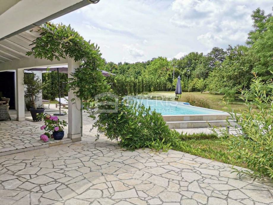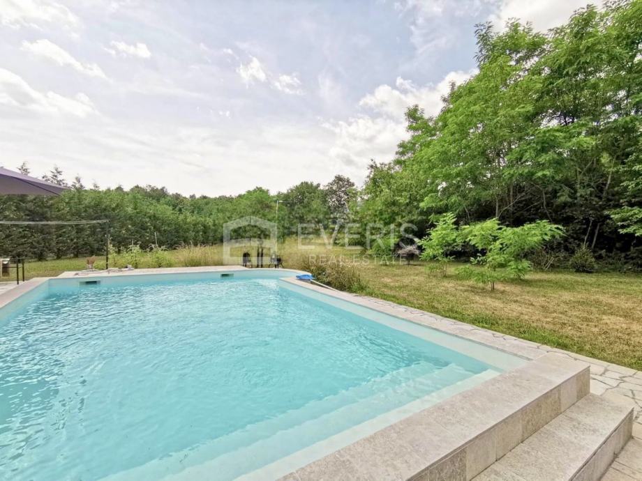 Kamena prizemnica s bazenom smještena u malom mjestu pokraj Labina na zemljištu površine 1.947 m2 okružena zelenilom i voćkama nalazi se na mirnoj lokaciji, na prelijepom Istarskom poluotoku.