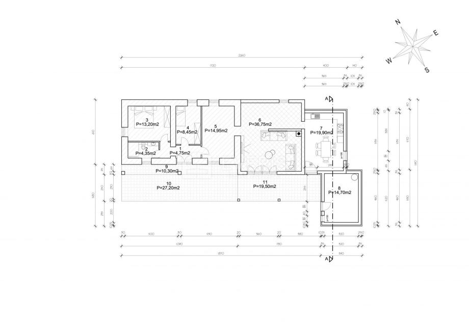 - kuhinje s blagovaonom i velikim dnevnim boravkom s izlazom na natkrivenu terasu