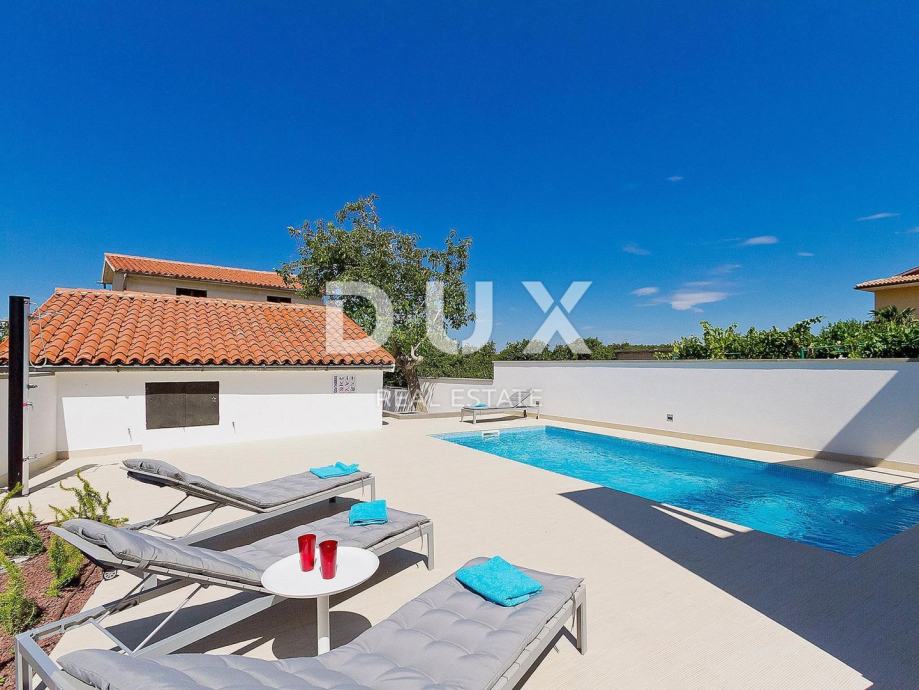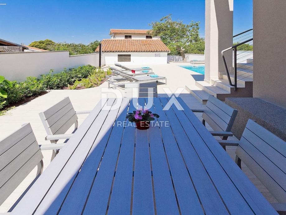 Ograđena okućnica sadrži bazen površine 23 m² sa sunčalištem te pomoćni objekt površine 28 m² koji se koristi kao ostava ali se može prenamjeniti u wellness/ fitness zonu ili studio apartman.