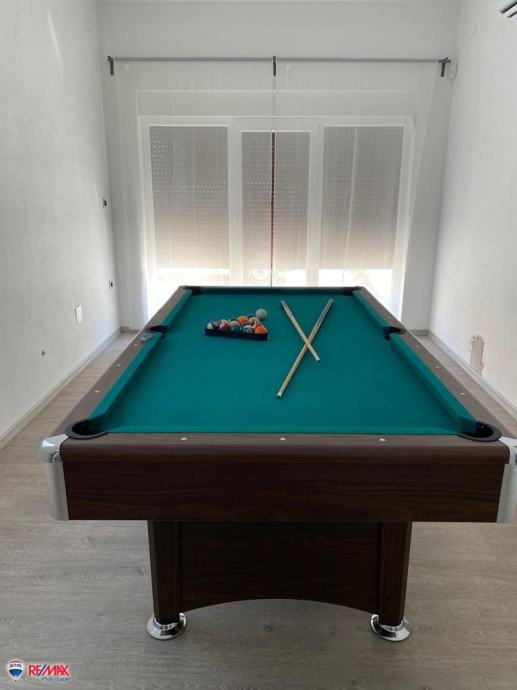 Vanjski prostor obuhvaća bazen s uređenim sunčalištem, natkrivenu terasu i potpuno opremljenu ljetnu kuhinju, vanjski toalet te dječje igralište. Parcela je u potpunosti ograđena i održavana, s automatskim sustavom navodnjavanja. Osigurani su privatni prilaz i parking, što jamči potpunu privatnost.