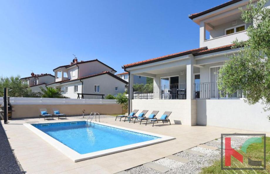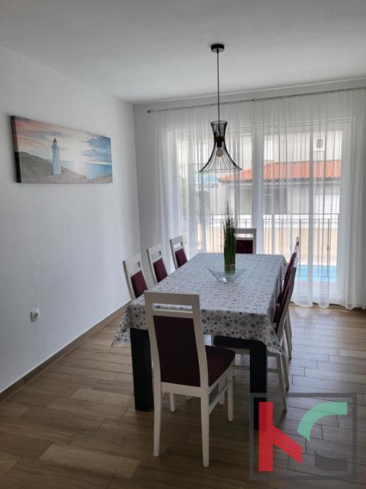Ova predivna kuća od 182 m2 smjestila se na okućnici od 492m2. Dvorište upotpunjuje veliki bazen, sunčalište, ognjište sa vrtnom garniturom, koje je u izgradnji, kao idealno mjesto za druženje, a drveća maslina omogućuju prirodni hlad tijekom ljetnih vrućina.