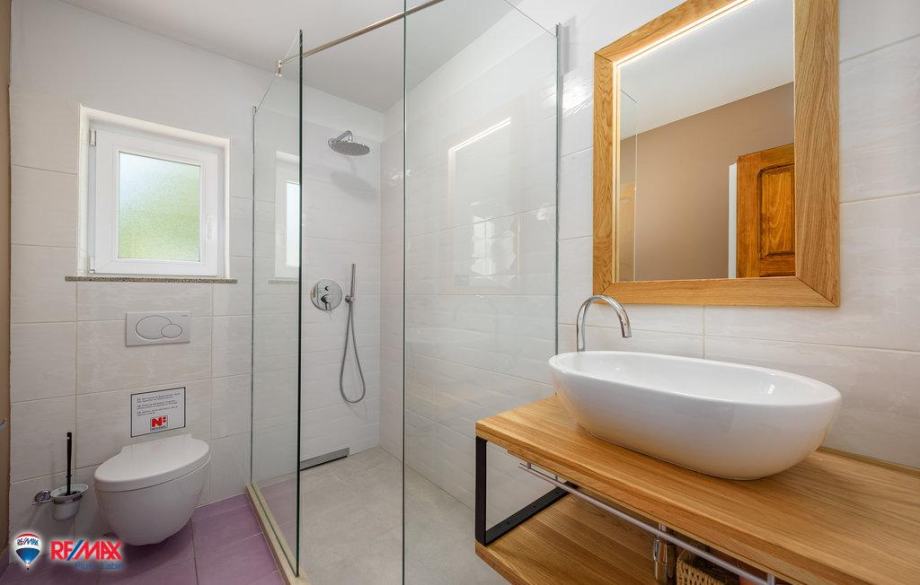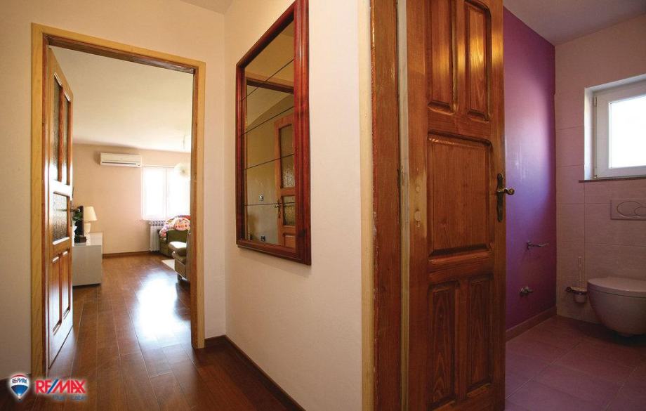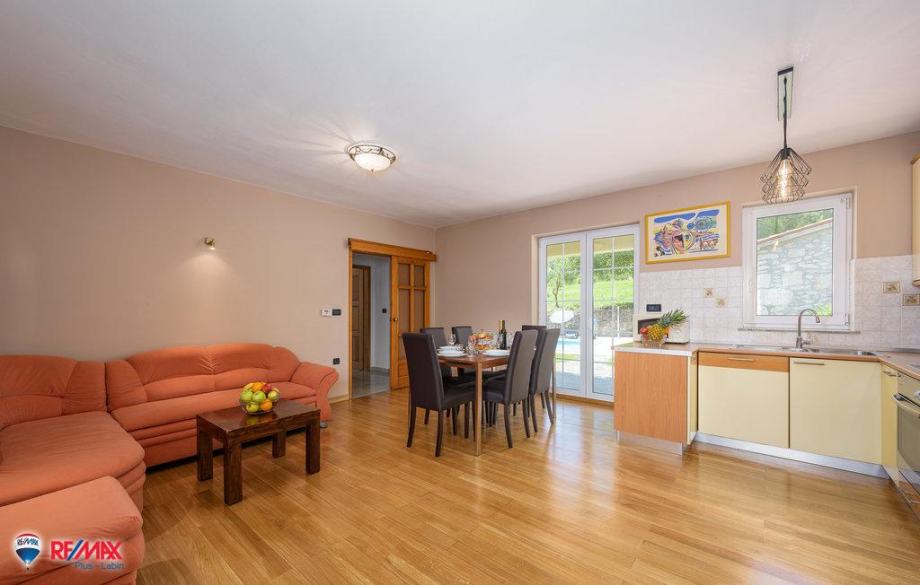 Namještaj u interijeru izrađen je po mjeri.Kuća ima grijanje preko peleta i klimatizaciju.