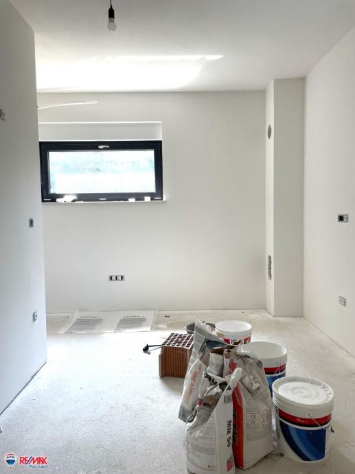 Na prodaju je moderna katnica površine 158 m², smještena u mirnom okruženju koje osigurava potpunu privatnost, a istovremeno se nalazi u blizini grada i svih potrebnih sadržaja. Kuća je u visokom roh-bau stanju, što omogućuje budućem vlasniku da je dovrši prema vlastitim željama.