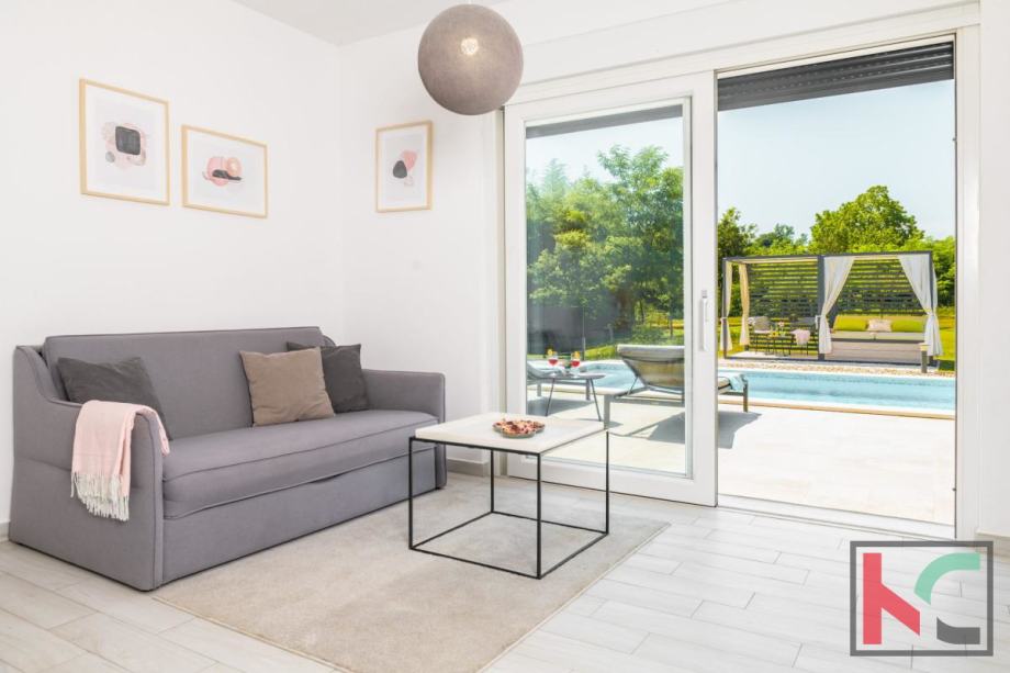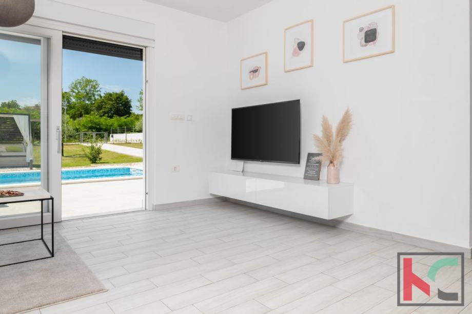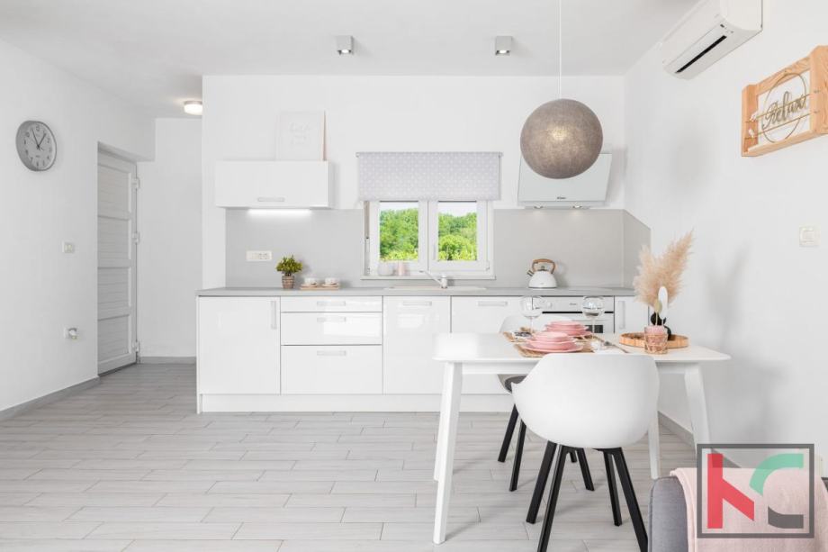 Prodaje se kompletno i moderno namještena prizemnica na mirnoj lokaciji nedaleko grada Labina.