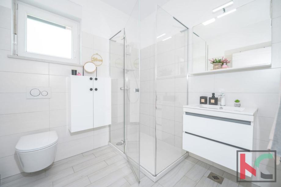 Opremljena je PVC stolarijom, klimatskom jedinicom te dimnjakom koji pruža mogućnost dodatnog izvora grijanja.