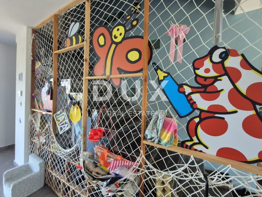 Dodatnu vrijednost ovoj nekretnini daju dva potpuno odvojena apartmana smještena u prizemlju, namijenjena turističkom najmu. Svaki apartman ima vlastiti ulaz i terasu s prekrasnim pogledom na more, što omogućuje stalan prihod uz minimalno ulaganje. Sastoje se od kuhinje, blagavaonice, dnevnog boravka, kupaonice te spavaće sobe.