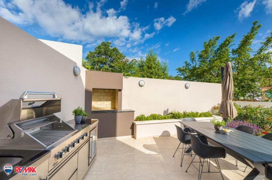 Izlaskom iz kuće na ovoj kaskadi nalaze se i popločana terasa te multifunkcionalan prostor s vanjskim dnevnim boravkom na koji se nastavlja sunčalište i prelijevni bazen. Dio okućnice obogaćen je zelenim travnjacima te istarskim autohtonim biljkama. Uređen je i kutak sa vanjskom ljetnom kuhinjom.