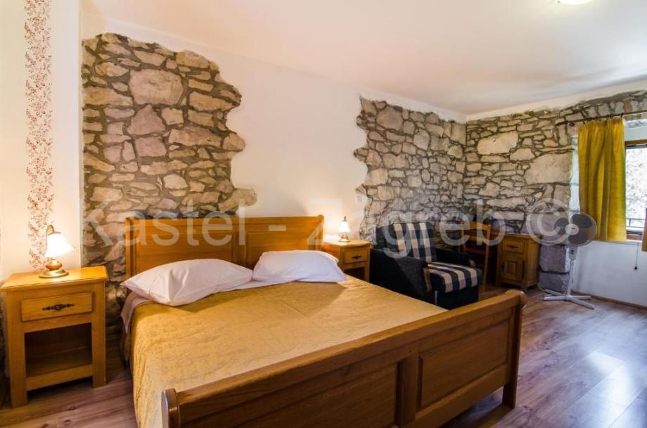 Glavna kuća ima restoran u prizemlju i 12 soba na katu i mansardi, svaka sa svojom kupaonicom. Cijeli objekt je klimatiziran. Iza glavnog objekta je 6 ucrtanih kamenih kuća od kojih su neke u biljem, a neke u ruševnom stanju. Ispred objekta je bazen 12x6 metara sa dogrijavanjem i teren oko bazen na dva nivoa. Cijeli dio ispred kuće i oko bazena ima automatsko navodnjavanje i diskretnu rasvjetu. Građevinski dio terena je 10000m2.