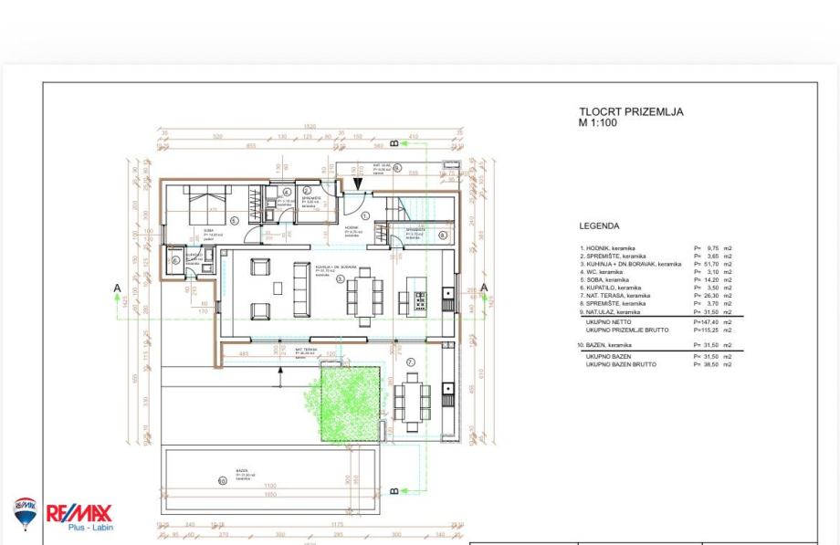 Za parcelu je izrađen projekt za katnicu ukupne neto površine 250 m², kao i projekt za bazen površine 30 m².