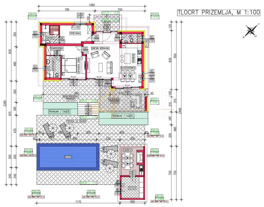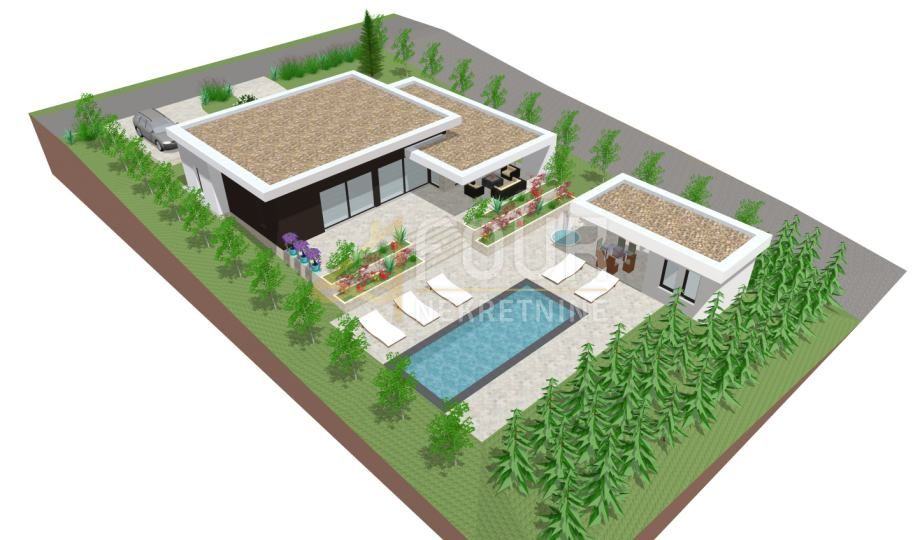 Projekt uključuje luksuznu vilu s prostranim dvorištem i bazenom, kao i dodatni objekt koji može služiti kao gostinjska kuća, garaža ili prostor za relaksaciju. Postoji mogućnost izmjene projekta prema vlastitim željama, čime možete prilagoditi prostor svojim potrebama i stilu života.