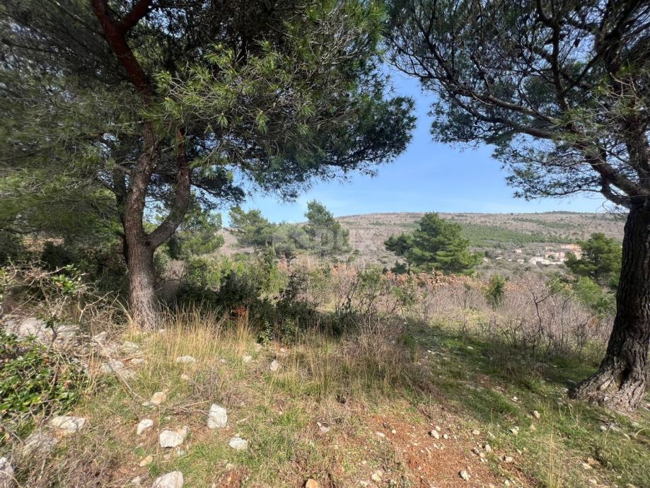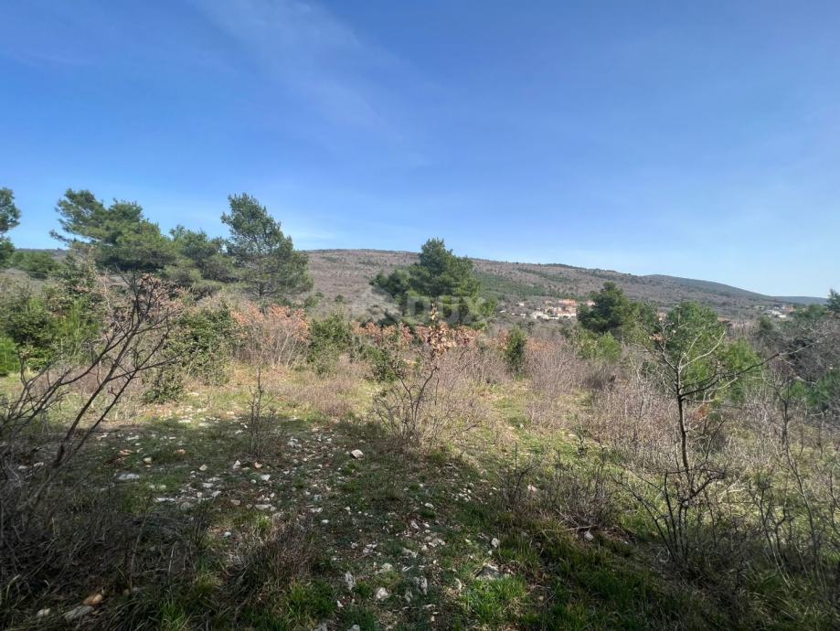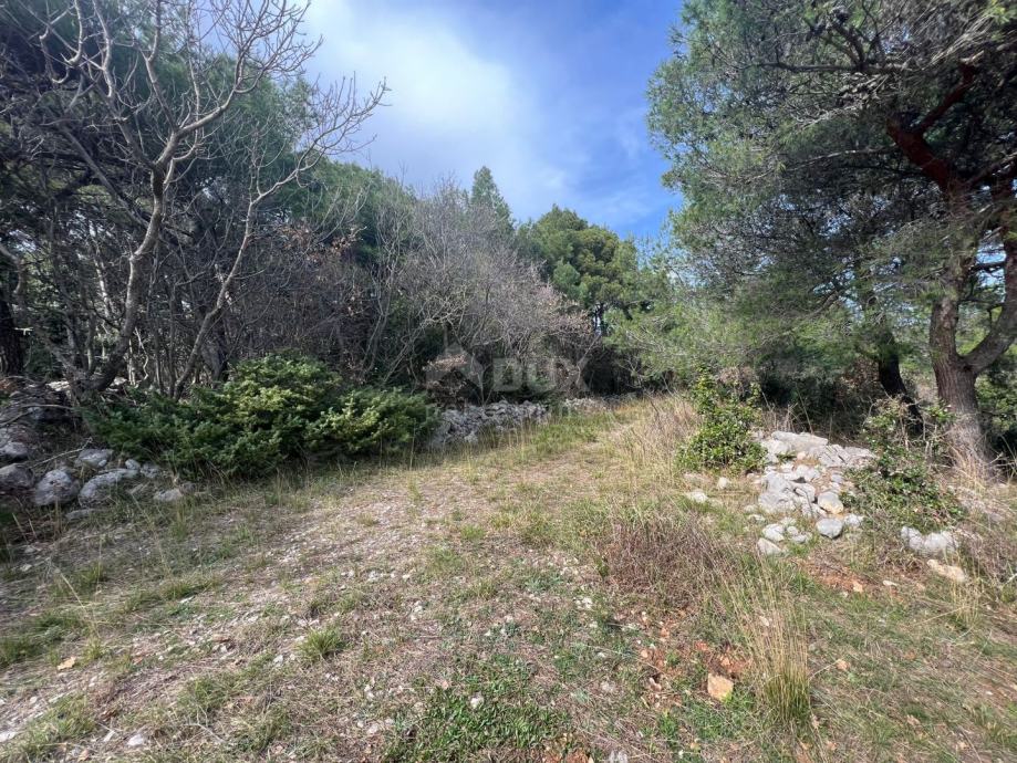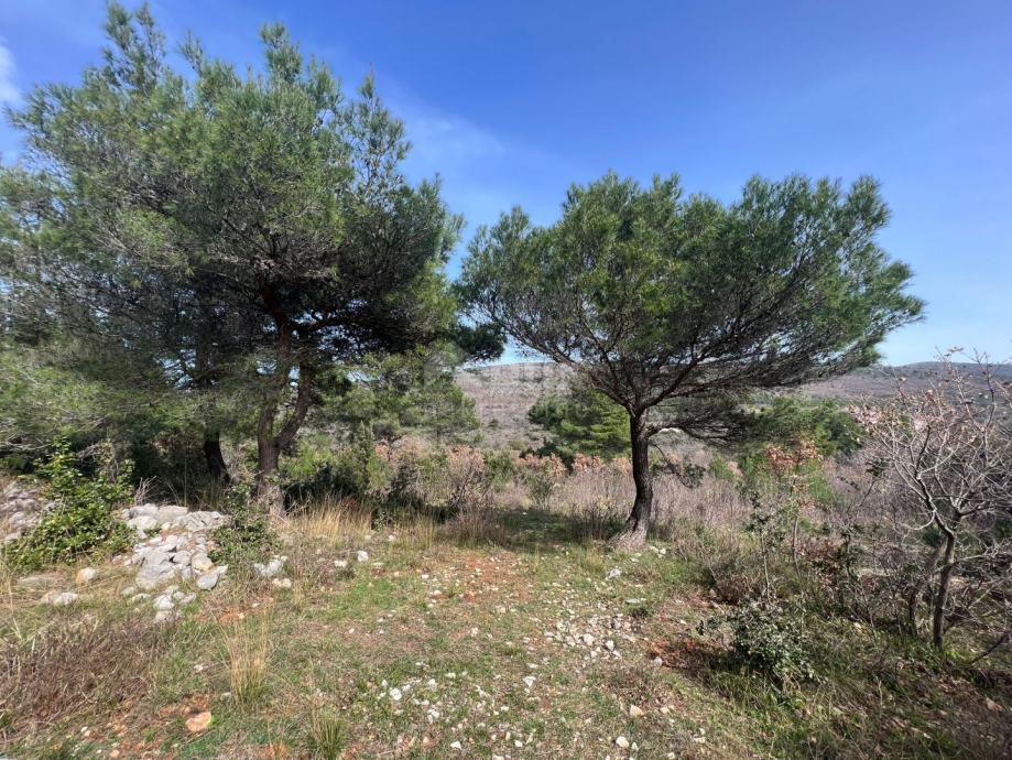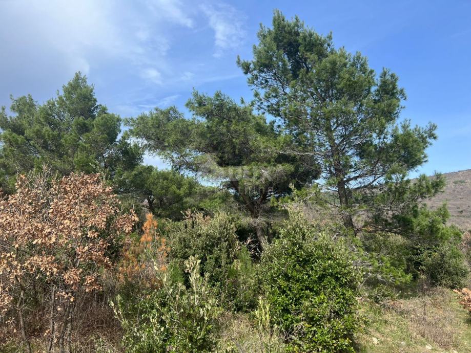 Na samo 1800 metara od mora prodaje se građevinsko zemljište s glavnim projektom na osami. Pogled na prirodu.