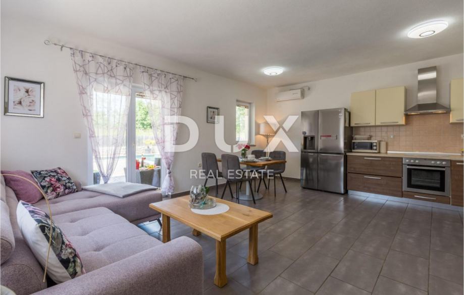Kuća broji 80m2 s okućnicom veličine 300m2, bazenom od 25m2 te drvarnicom od 8m2.
