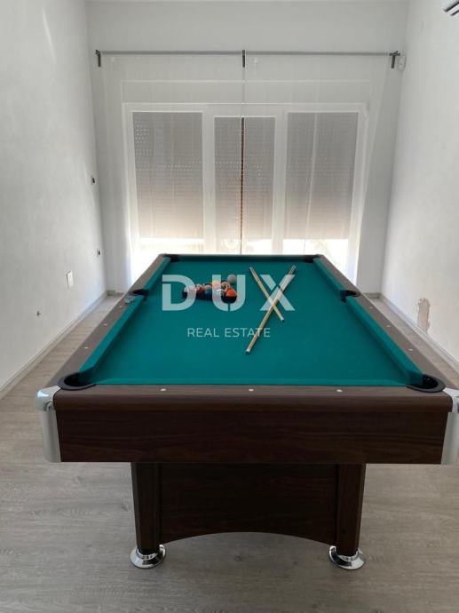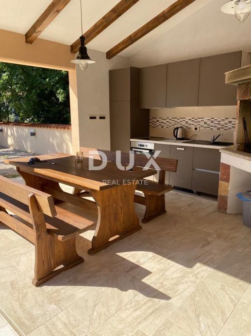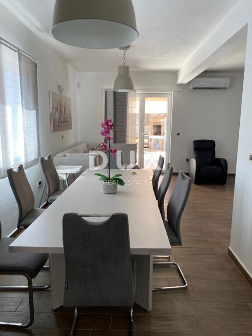 Prodaje se moderno uređena samostojeća katnica ukupne površine 151 m², smještena na svega nekoliko minuta vožnje od centra grada. U prizemlju se nalazi prostrani dnevni boravak povezan s kuhinjom i blagovaonicom, jedna spavaća soba, kupaonica te dodatna prostorija koja se, prema željama budućeg vlasnika, može koristiti kao prostor za druženje, kućnu teretanu, radnu sobu ili slično. Na katu su smještene tri spavaće sobe te još jedna kupaonica. Iz dnevnog boravka izlazi se na natkrivenu terasu. Ovdje se nalazi i potpuno opremljena ljetna kuhinja sa štednjakom, perilicom i hladnjakom, kao i vanjski toalet.