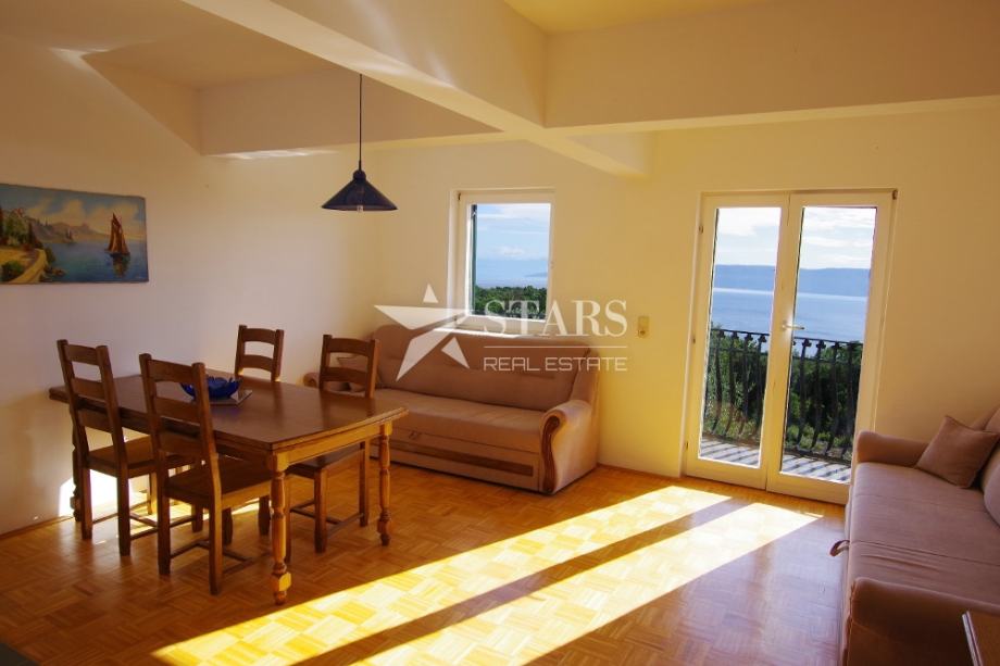 Na mirnoj lokaciji, okružena prirodom i otvorenim pogledom na more, na svega 10 km od centra Labina, prodaje se apartmanska kuća površine 450 m², uređena i potpuno opremljena za turistički najam. Kuća se prostire na prizemlje i dva kata te raspolaže s ukupno osam stambenih jedinica, svaka sa zasebnim ulazom, balkonom ili terasom i otvorenim pogledom na more.