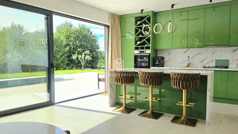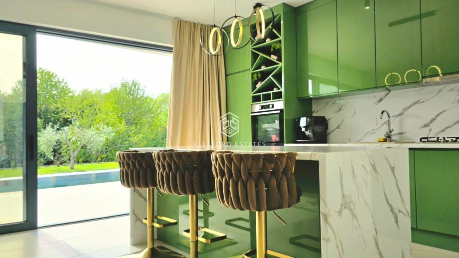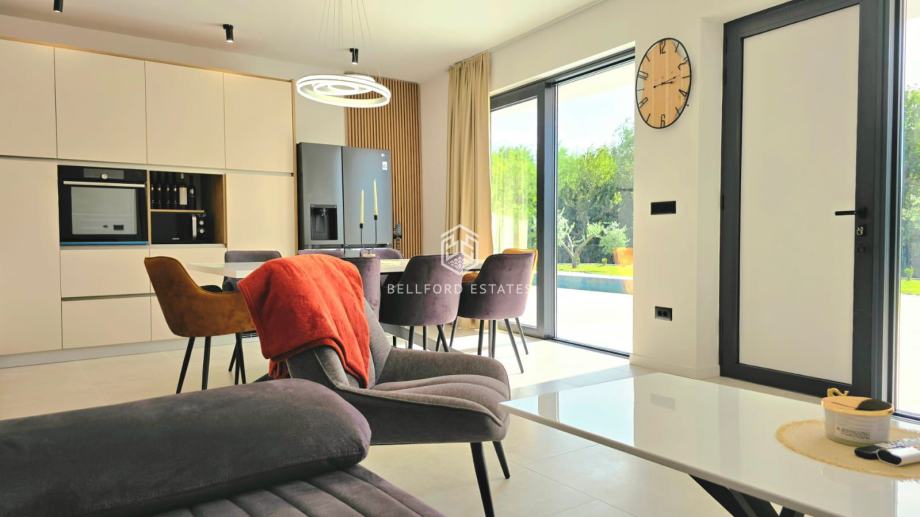 Vila je potpuno namještena i opremljena modernim dizajnom, uključujući klima uređaje i podno grijanje u svakoj prostoriji, osiguravajući ugodan i luksuzan boravak.