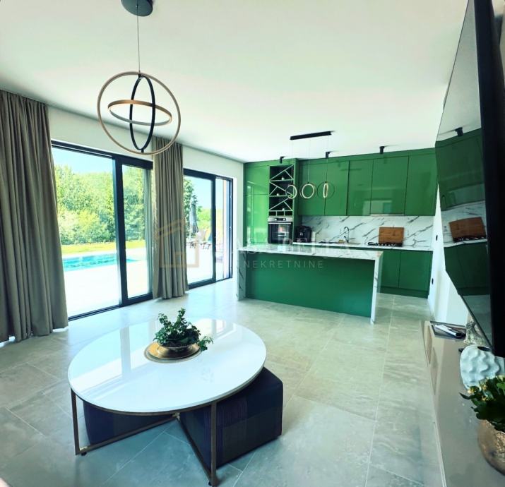 Nekretnina se prodaje potpuno namještena i odmah useljiva. Pomno birani materijali i moderan dizajn stvaraju luksuzan i udoban ambijent. Svaka prostorija je opremljena klima uređajem, a cijeli objekt ima podno grijanje za maksimalnu udobnost tijekom cijele godine.