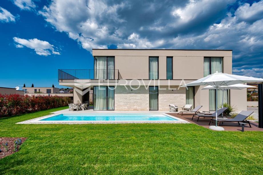 Luxury villa with sea view near PorečBasic information:Land area: 1005 m²Living area: 248 m²Room layout:Ground floor:Entrance hallSpacious open-space kitchen, dining room and living room with access to a large terraceLuxurious bedroom with private bathroomFirst floor:three bedrooms with private...