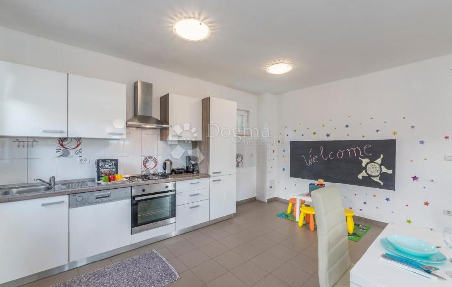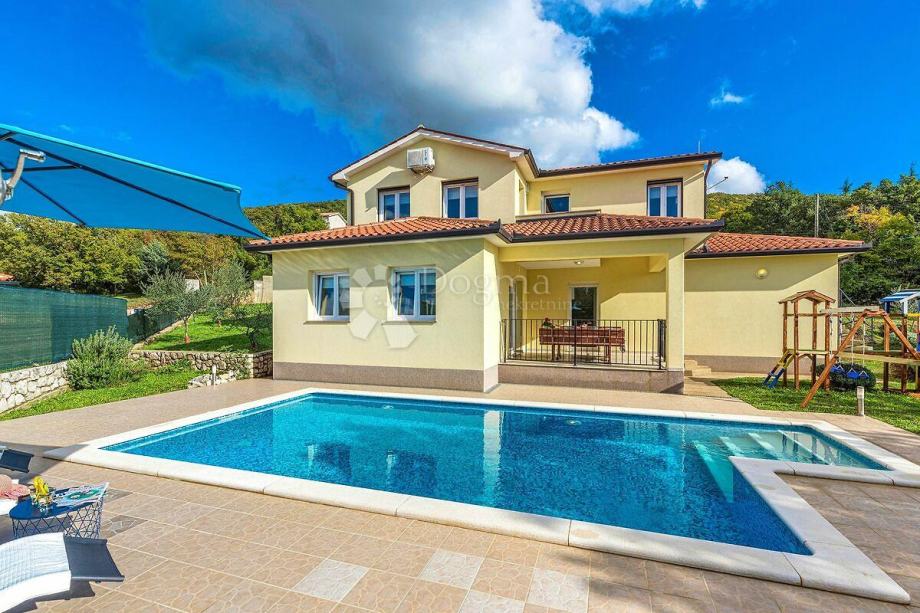 Ovdje imamo u ponudi lijepu kuću sa bazenom koja se smjestila na okućnici od 1122 m2. Kuća se prostire na prizemlje i kat, ukupno 169 m2. U prizemlju se nalazi kuhinja sa blagovaonom i ostavom, dnevni boravak, spavaća soba i kupaonica. Uređenim stepeništem dolazi se na 1. kat gdje se nalaze dvije spavaće sobe i dvije kupaonice, balkon sa kojeg se pruža otvoren pogled na zelenilo.
