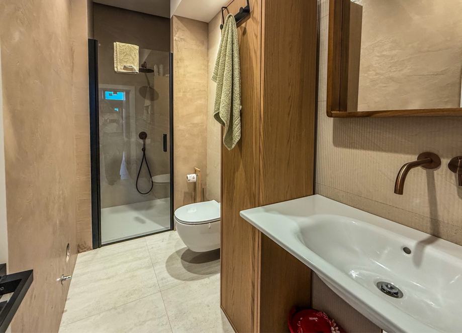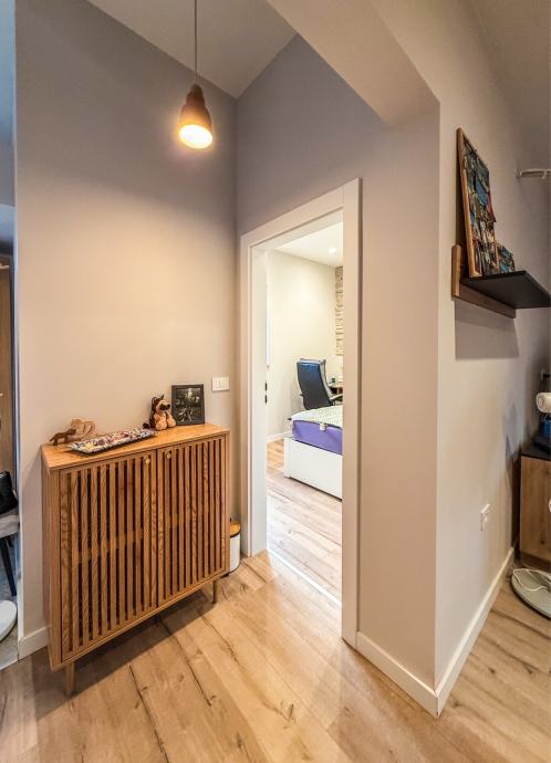 Stan je u potpunosti renoviran – nove instalacije vode i struje, stolarija, podovi i kupaonica izvedena u mikrocementu.