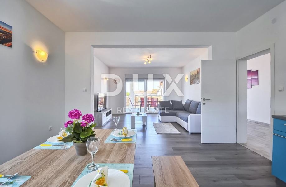 Ulazom u stan smjestilo se predvorje s predviđenim prostorom za garderobu, isto se predvorje zatim pretvara u hodnik koji povezuje sve prostorije stana. Tako pristupom prema dnevnome prostoru stana, koncipiranom po sistemu "open space" prostora bez pregradnih zidova, nalazimo se u modernoj i opremljenoj kuhinji s otokom, savršenoj za pripremu vama najdražih delicija. Uz kuhinju smjestila se i blagovaonica dovoljna za cijelu obitelj, kao i prostran dnevni boravak iz kojega se uz pomoć klizne staklene stijenke pristupa prema natkrivenom balkonu koji se prostire cijelom dužinom stana, a riječ je o savršenom mjestu za odmor i opuštanje uz čašu vama najdražega vina.