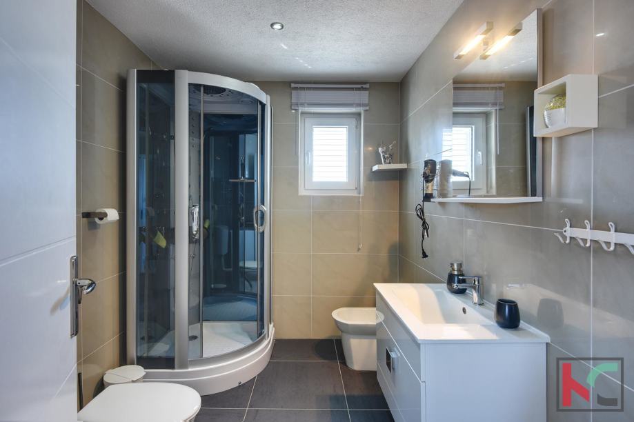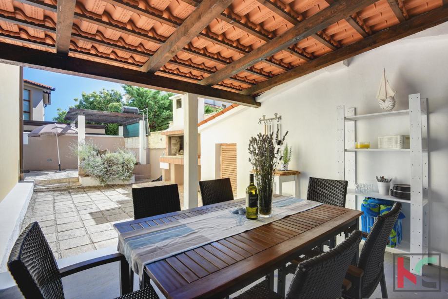 Stanu pripada 97 m2 uređenog dvorišta na kojem se nalazi bazen, sunčalište, roštilj i natkriveni dio za boravak u hladu. Ljetna kuhinja i roštilj idealni su za druženja i opuštanje na svježem zraku. Osim dvorišta, pripadaju mu i dva parkirna mjesta.