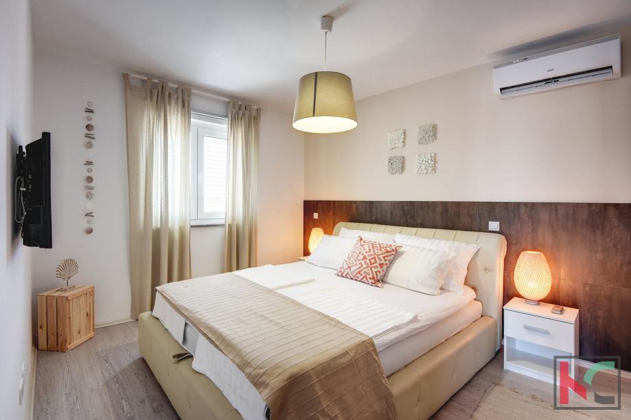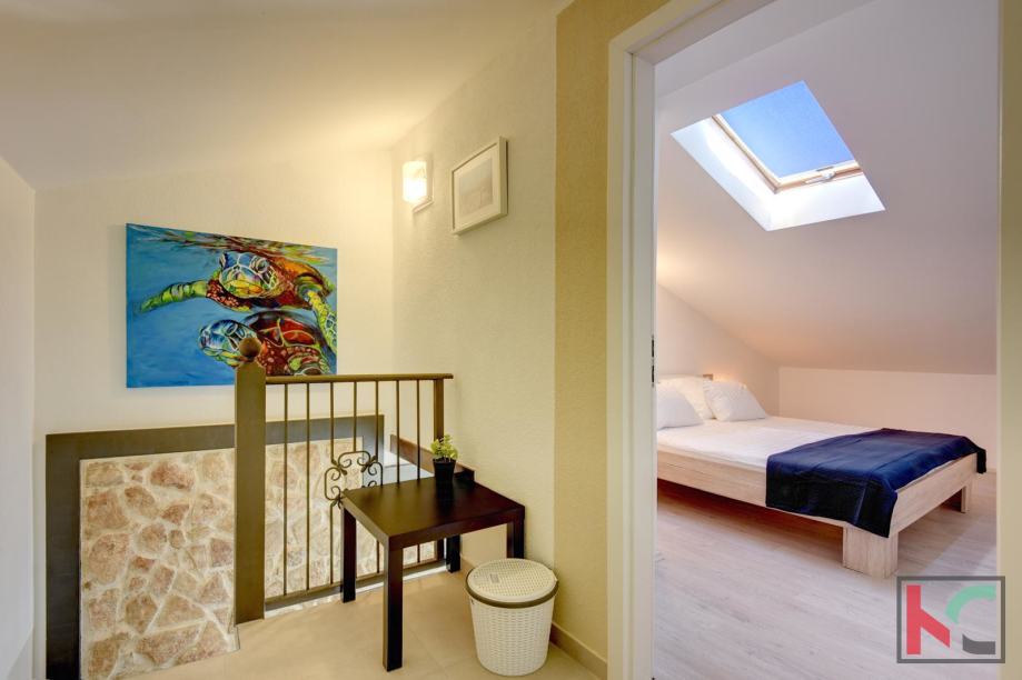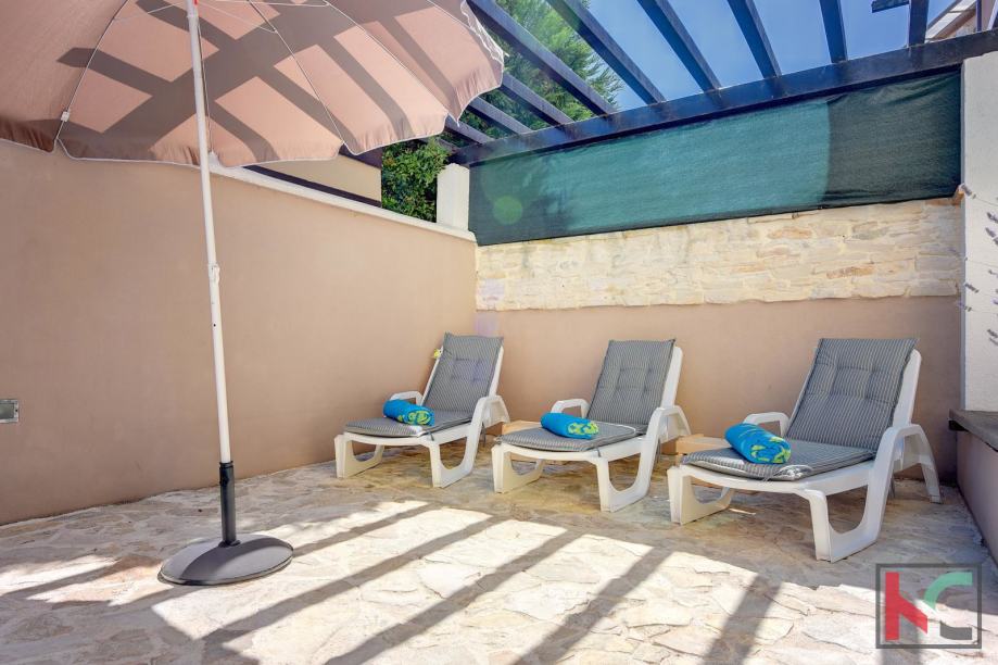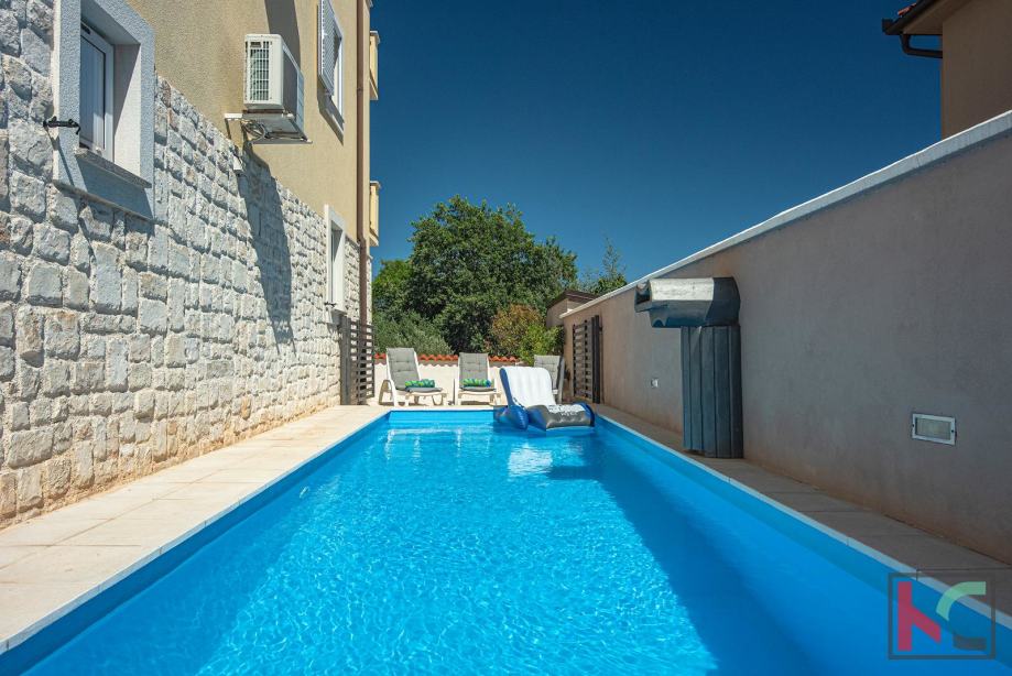 Ližnjan, trosoban dvoetažni stan tlocrtne površine 95 m2 i 97 m2 uređenog dvorišta sa bazenom.