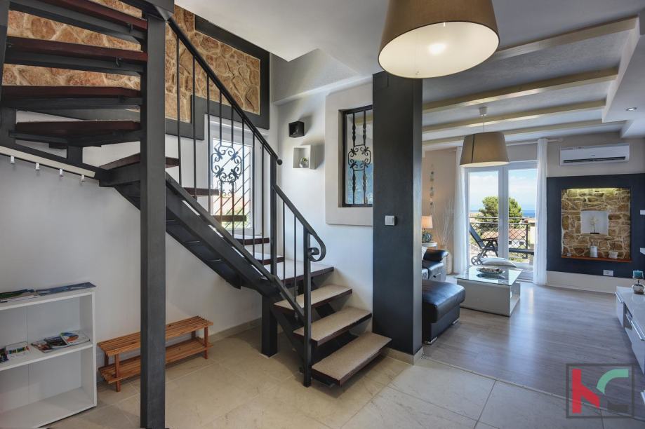 Sastoji se od ulaznog hodnika, dnevnog boravka, kuhinje sa blagovaonom, balkona, kupatila i sobe na prvoj etaži, a na drugoj etaži nalaze se još dvije spavaće sobe, ostava i još jedno kupatilo.