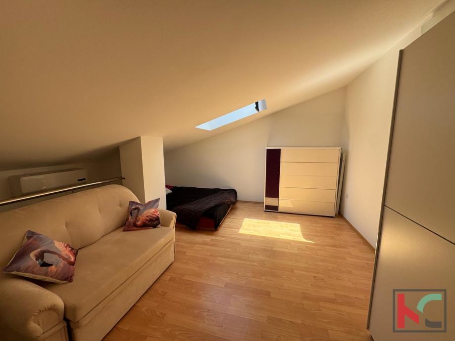 Sastoji se od ulaznog hodnika, kupaonice, dnevnog boravka u komunikaciji sa kuhinjom i blagovaonicom s izlazom na terasu, 2 spavaće sobe od kojih jedna ima izlaz na vlastitu terasu te na galeriji još jedna spavaća soba.