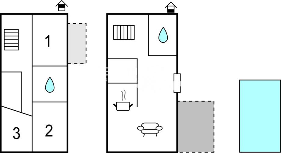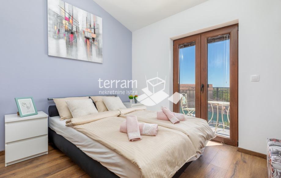 Kuća se ističe svojim pažljivo osmišljenim rasporedom koji uključuje tri spavaće sobe, a orijentirana je prema istoku i zapadu, što omogućuje obilje prirodnog svjetla tijekom cijelog dana. Elegantno uređena unutrašnjost opremljena je modernom kuhinjom s aparatima, TV-om i udobnim krevetima, pružajući sve potrebno za ugodan boravak.