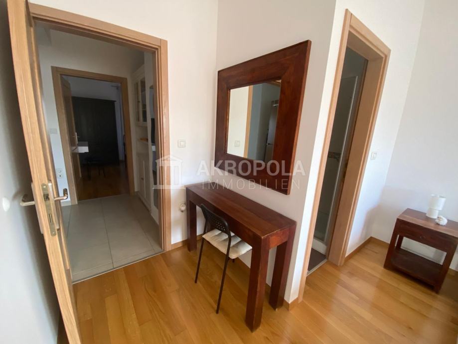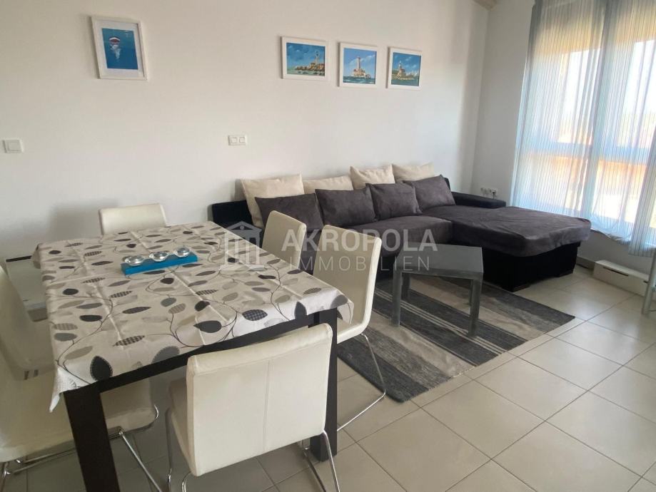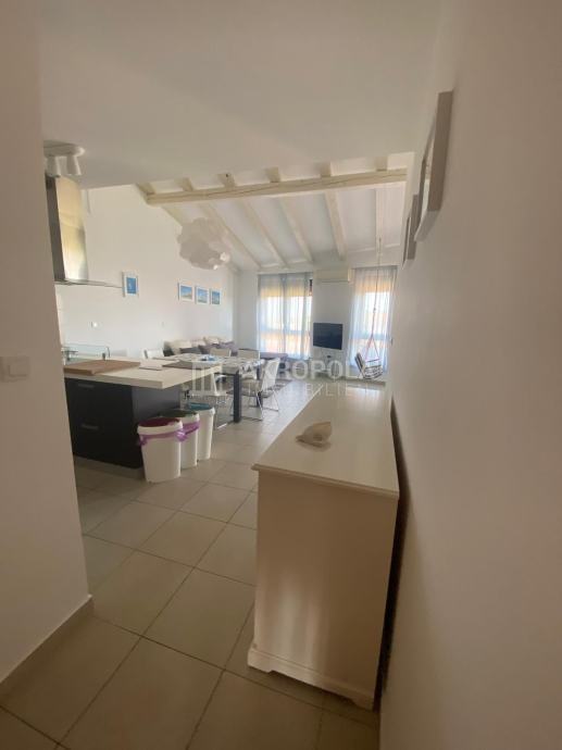 Stan ima 2 spavaće sobe, 2 kupaonice, dnevni boravak s kuhinjom i blagovaonicom, 2 terase i parkirno mjesto.