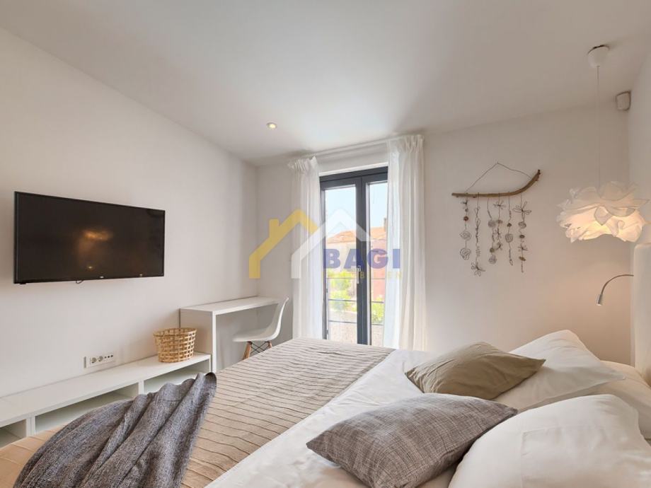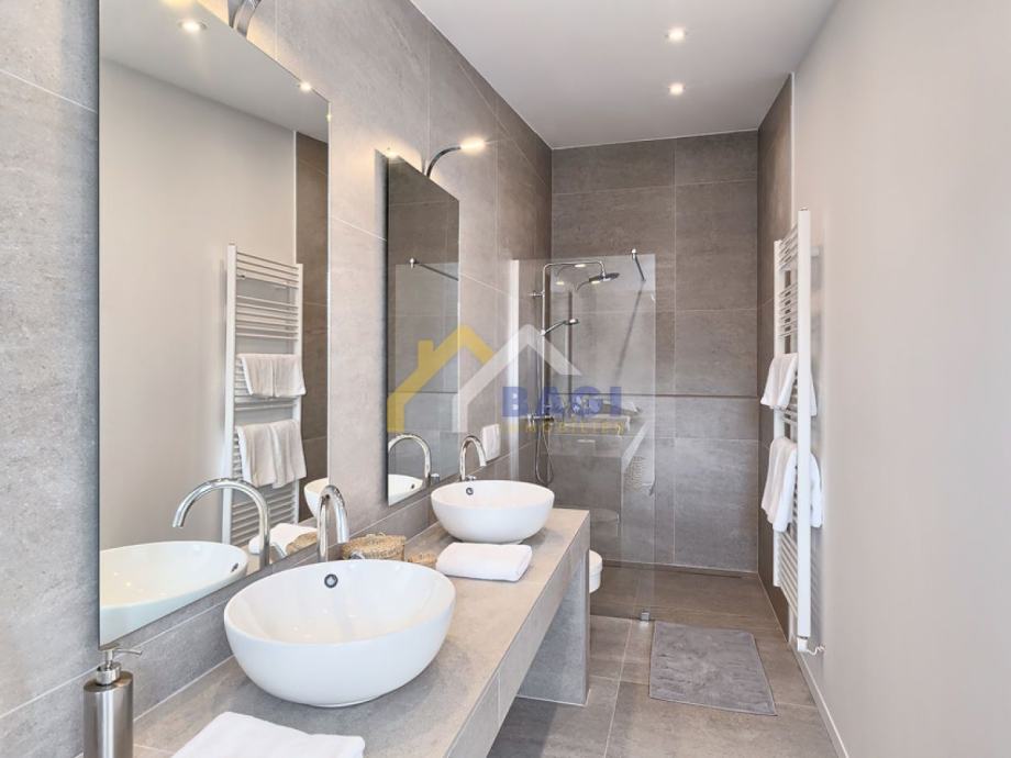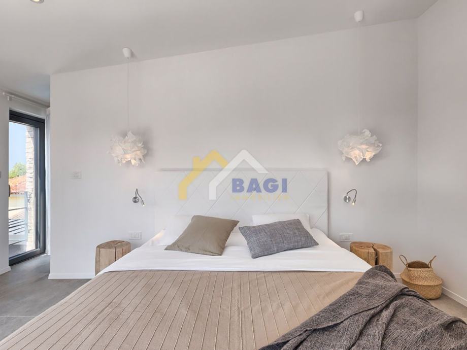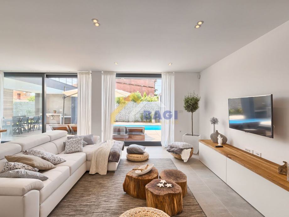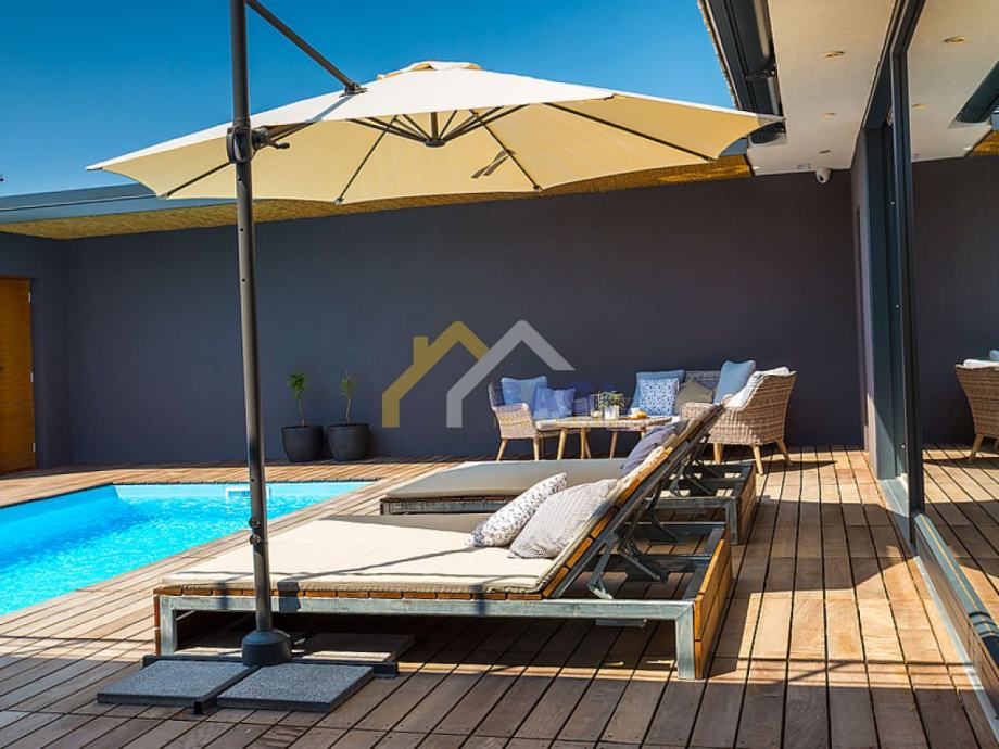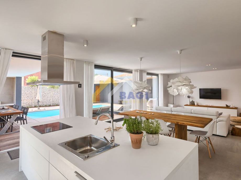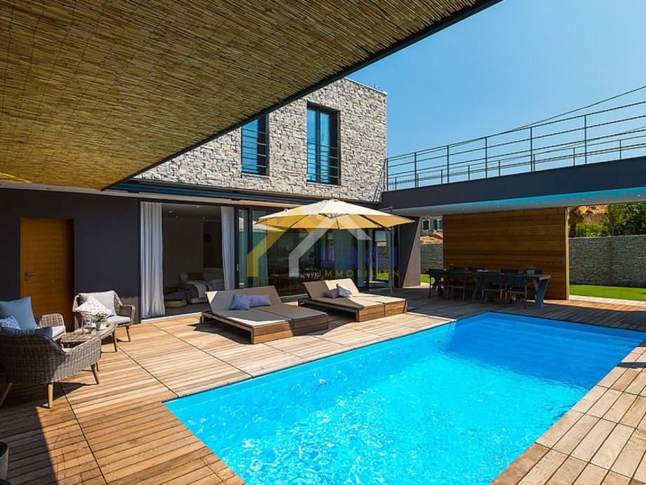 Ova lijepa, moderna vila nudi cca 250 m2 korisnog prostora koji se prostire preko podruma, prizemlja i prvog kata. U podrumu se nalazi strojarnica, i spremište koje se može koristiti kao vinski podrum, konoba ili prostor za društvene igre, a moguće je instalirati i saunu. U prizemlju se nalazi prostran dnevni boravak sa kuhinjom i blagovaonicom, odvojeni toalet i praonica, a na katu se nalaze 2 velike (en suite) spavaće sobe svaka sa svojom kupaonicom kao prostrana terasa od cca 43 m2. Iz prostranog dnevnog boravka koji je otvorenog plana zajedno s kuhinjom i blagovaonicom, se kroz visoke staklene stijene izlazi na lijepo uređenu okućnicu sa bazenom. Bazen (21,64m2), ljetnom kuhinjom, zidanim vanjskim grillom i al fresco stolom i stolicama. Sve etaže se mogu povezati unutarnjim dizalom za koji je izgrađen prostor (potrebno instalirati samo dizalo). Ova vila je kvalitetno građena i opremljena s vrhunskim komponentama , prvoklasnom keramikom i sanitarijama a sve sa osobitom pozornošću na detalje. Tu je i video nadzor, alarm, priprema za centralni kamin, priprema za solarne panele itd. Mirno okruženje.