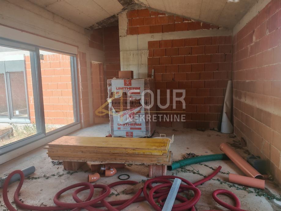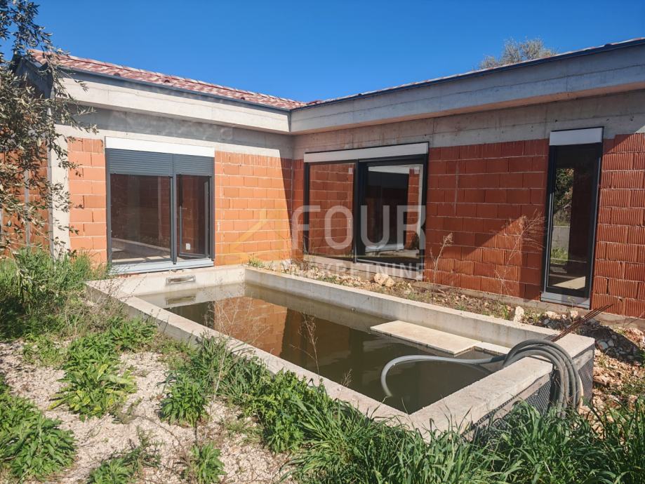 Ližnjan, novogradnja 2026. godine u roh bau fazi – prodaje se samostojeća prizemnica od 120m2, smještena na ograđenoj parceli od 414m2 s bazenom od 18m2.